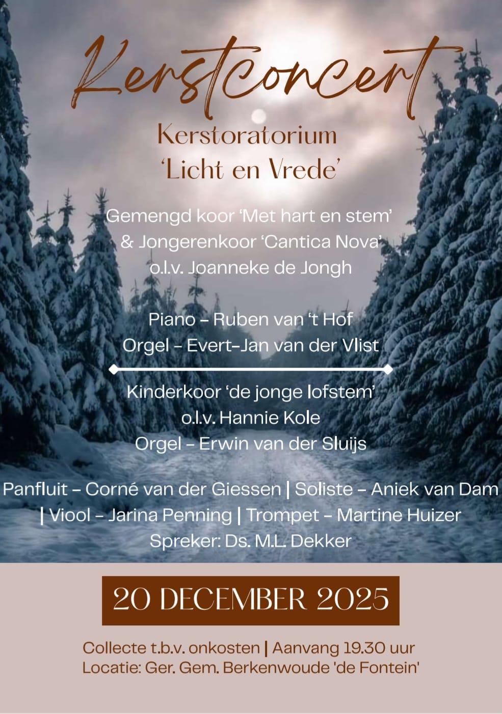Op D.VG. 20 december zal onze jaarlijkse kerstzangavond worden gehouden. Aanvang 19.30. Op deze avond hopen de diverse koren het Kerstoratorium ‘Licht en Vrede” uit te voeren.